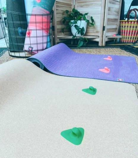 *Will adhere semi-permanently to most yoga mats (cloth applications not recommended)