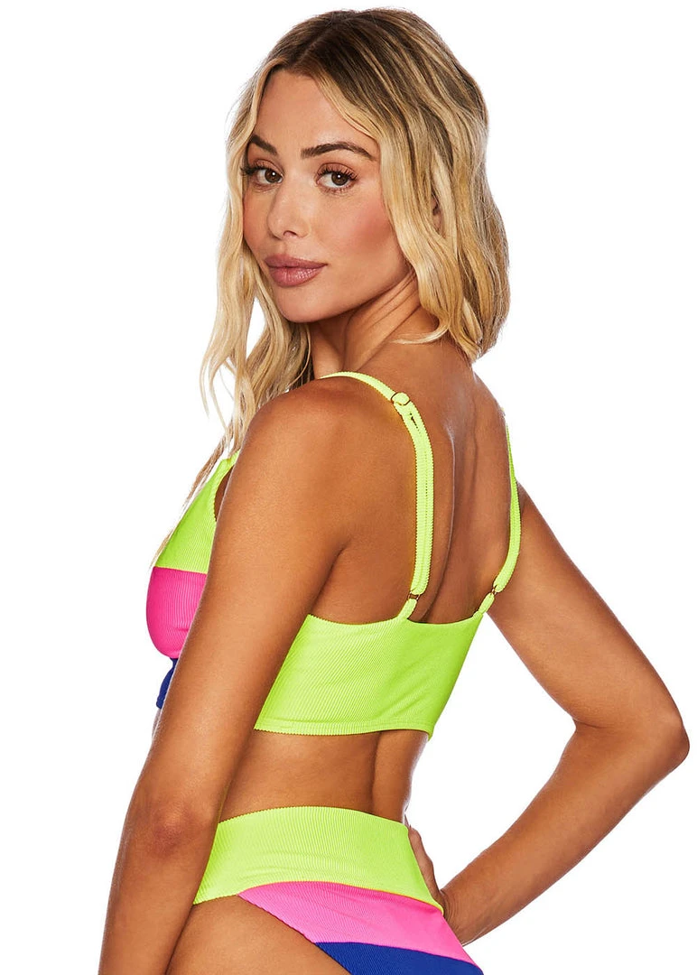 Beach Riot’s Riza Top built with adjustable straps and thick band for support with a classic triangle style front. This top features colorblocking in our ultra soft ribbed fabric. Make it a set and pair this top with the matching Alexis Bottom.