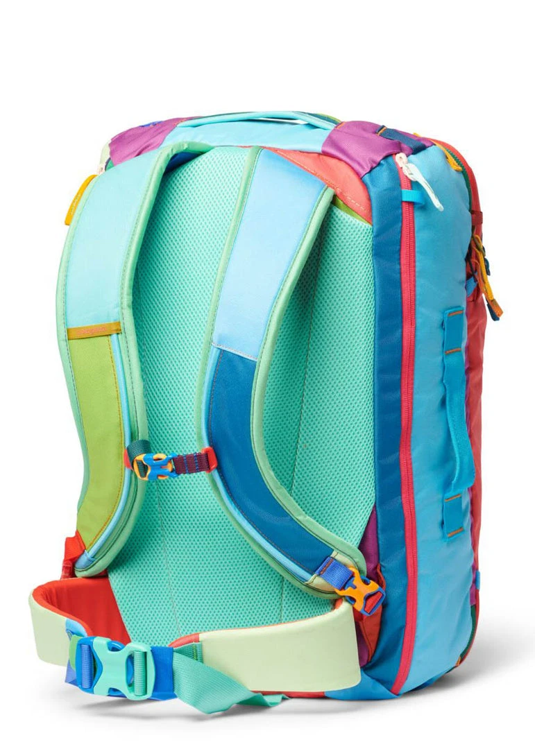 Cotopaxi Del Dia Allpa Travel Pack is an rugged 35L travel bag and part of Cotopaxi’s signature adventure travel pack. The Allpa 35L Travel Pack protects and comfortably carries all your possessions, with a slightly smaller size than the 42 perfect for a few days away, whether you’re headed across the ocean, across state lines, or across the street.