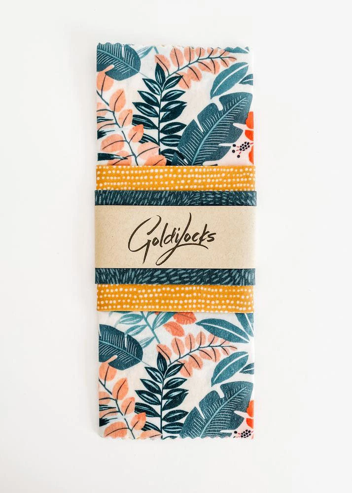 Goldilocks beeswax wraps are an all natural, reusable & eco-friendly alternative to plastic wrap in the kitchen. Great for covering containers, wrapping up produce, or even as a snack bag on the trail.
