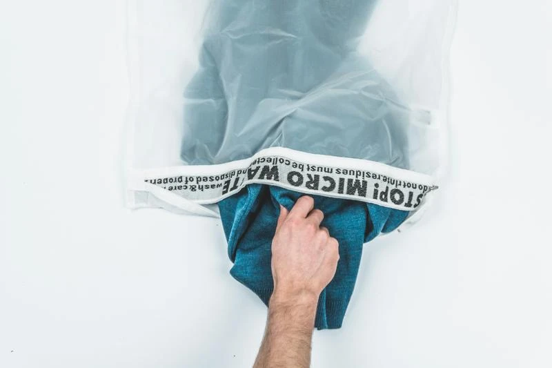Did you know synthetic garments lose plastic particles during washing? Particularly during washing, the plastic fibers that break off end up in the wastewater and so far cannot be filtered out efficiently. The Guppyfriend Washing Bag is the most effective hands-on solution against microplastic pollution from washing.