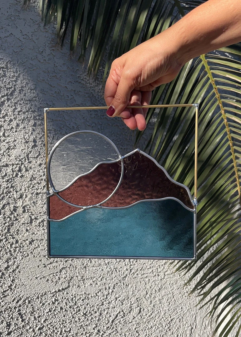 This stunning, unique, handcrafted piece, designed by a local artist from our home state of Nevada is a one of kind design, as a limited edition piece, just in time for the holidays. We are excited to partner with SZKLO Glass to bring you a piece of art that is inspired by our love of the Mountains. Each piece of glass is hand-cut, assembled, soldered, and finished ready to hang. Each piece uses clear, turquoise, and auburn glass, designed with a minimalist feel and finished off with brass. Whether you are purchasing for yourself or as a gift this piece is sure to become a beloved addition to any home.